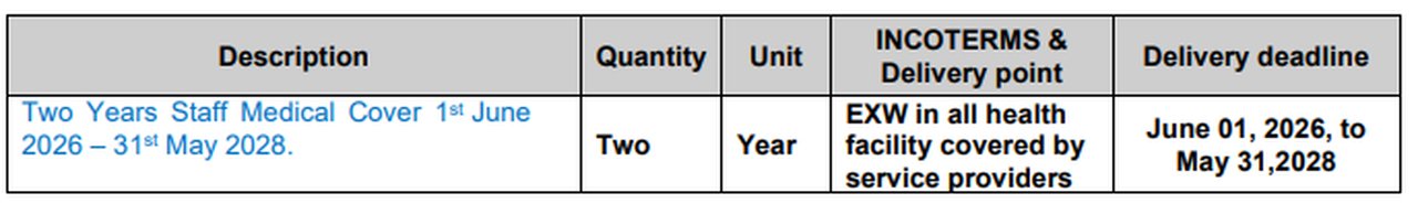 A tender opening session will take place on 10th May 2026 in ACTED representative office in Mogadishu, Somalia at 10:00 am (Mogadishu Time in ACTED office).